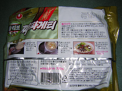 で、これが袋の裏面。 よく見ると……うわ、なんだよ「OLIVE OIL」って!? オリーブオイル? もう訳わかりません。 作り方も読めないし、だめだめ。