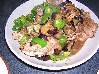 で、翌日の3月6日。 ナスとピーマン、豚肉を炒めてますね。 色合いからして、オイスターソース使ってると思います。 あと、最近隠し味にお酢を入れることが多いです。 いい感じに味が締まりますよ。