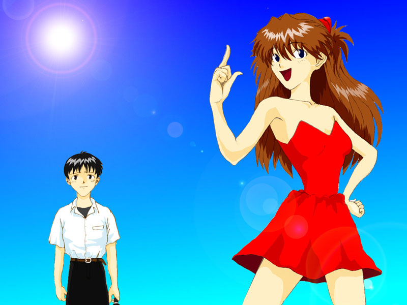 | 眩しい夏の陽射しの下のアスカとシンジです。やっぱりアスカには太陽が似合いますね。 | ||